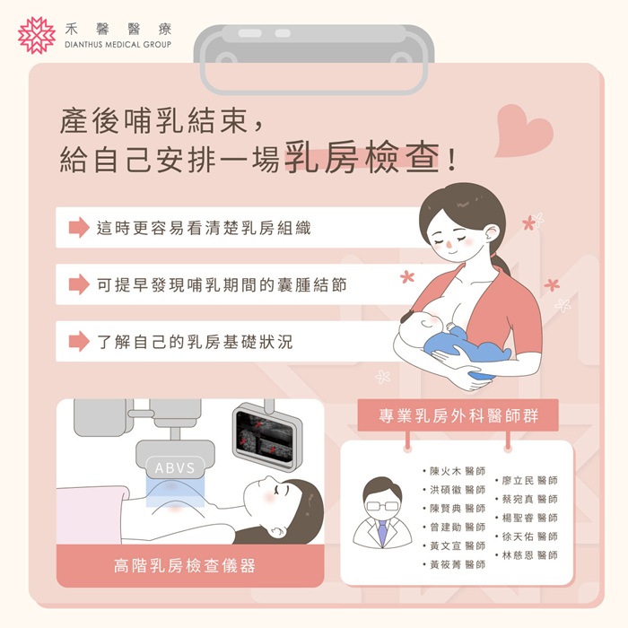 🔸乳腺組織在哺乳後會比較穩定,影像更清楚、判讀更精準