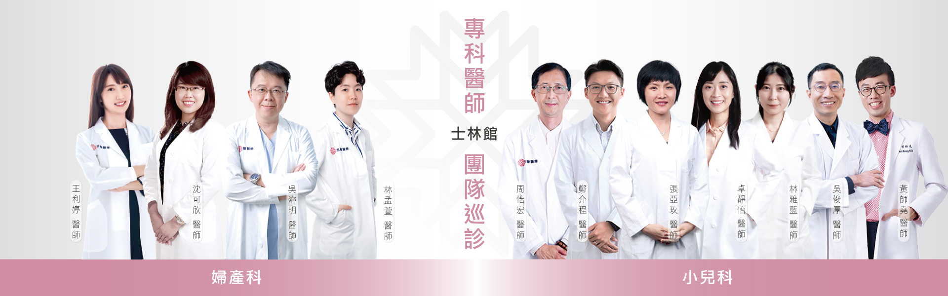 婦產科醫師巡診:士林館<一週三天>;桃園館<一週六天>;台中館<一周六天>