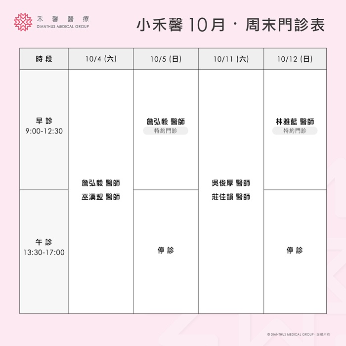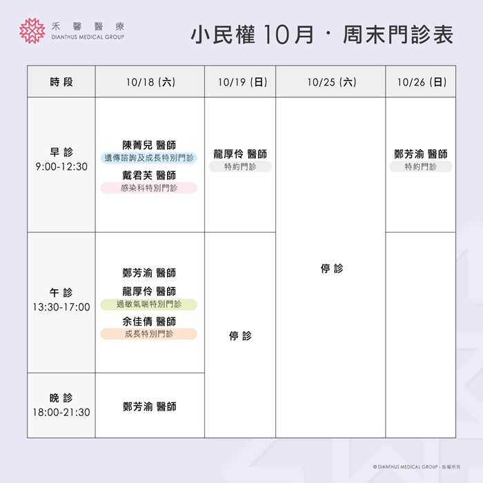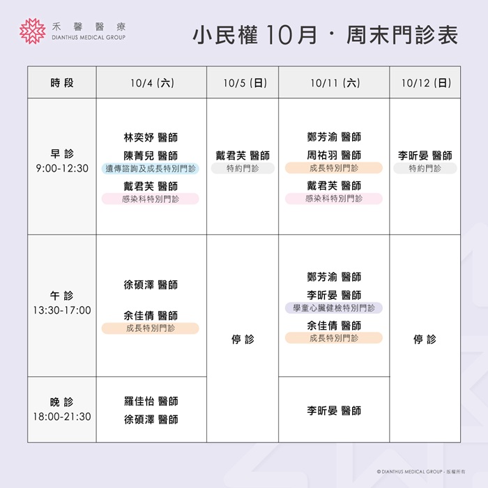 首頁 > 最新消息> 114/10/06 【十月份周末】小禾馨、小民權兒科門診資訊
